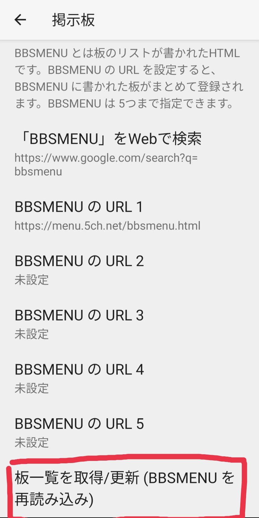 5.「板一覧を取得/更新(BBSMENUを再読み込み)」を押す