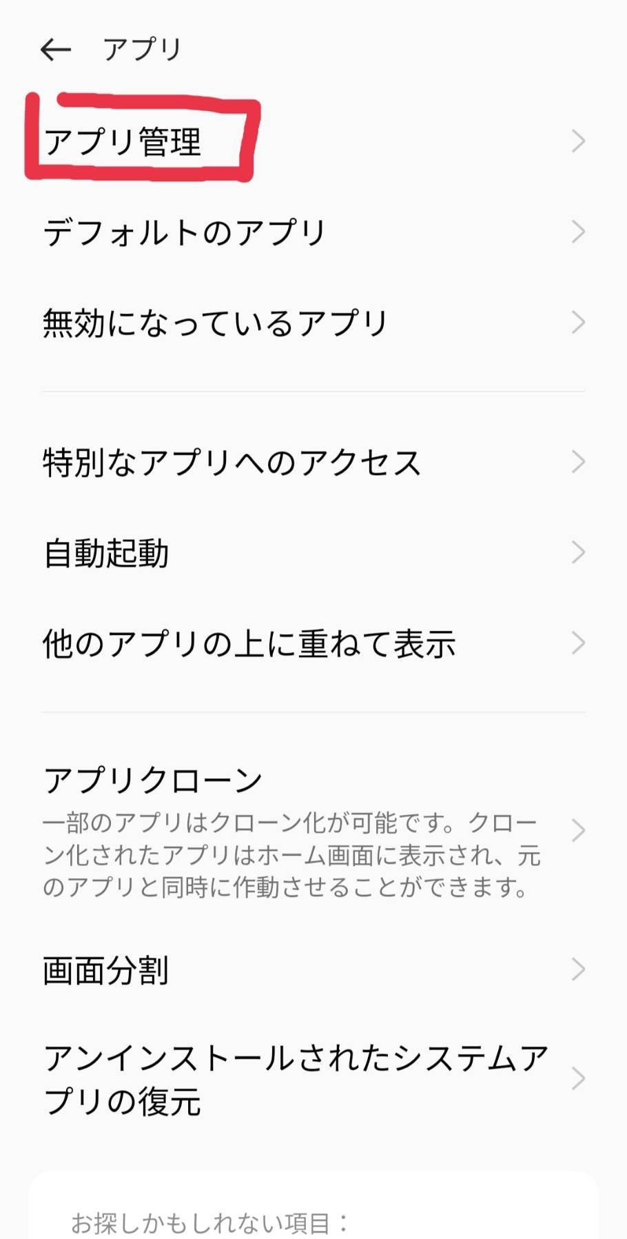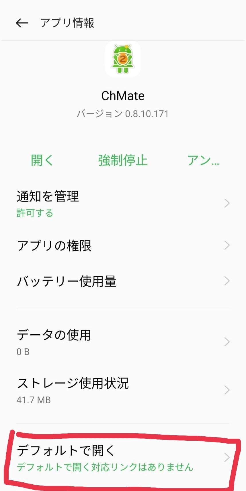 7.スマホの設定アプリを開き、「アプリ」→「アプリ管理」を押し「ChMate」を選択