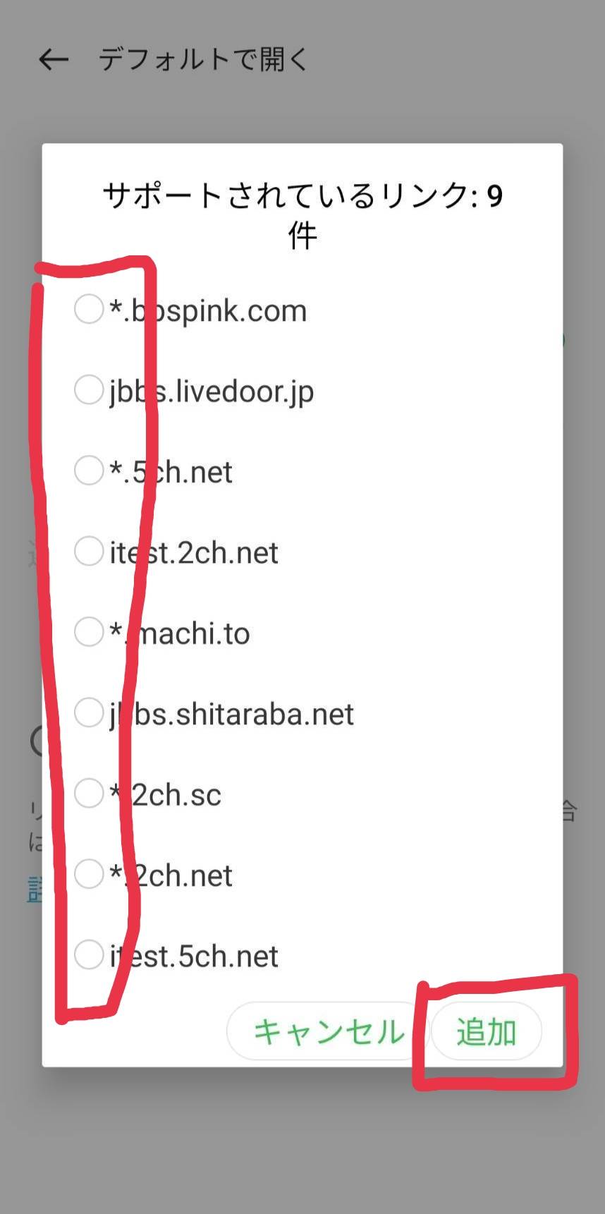 8.「デフォルトで開く」→「サポートされているリンクを開く」→「リンクを追加」