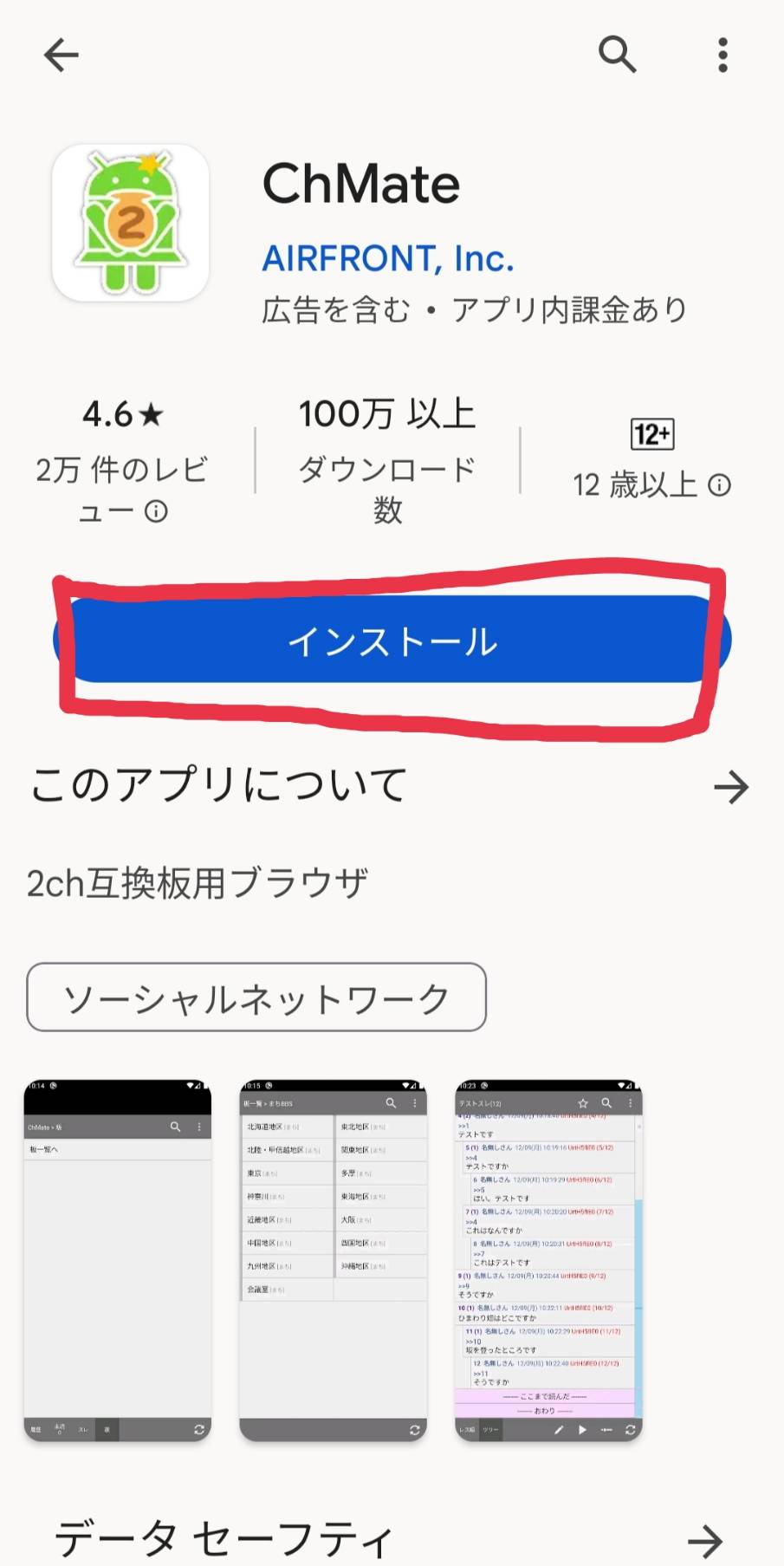 1.Playストアで「ChMate」をインストールし、アプリを開く